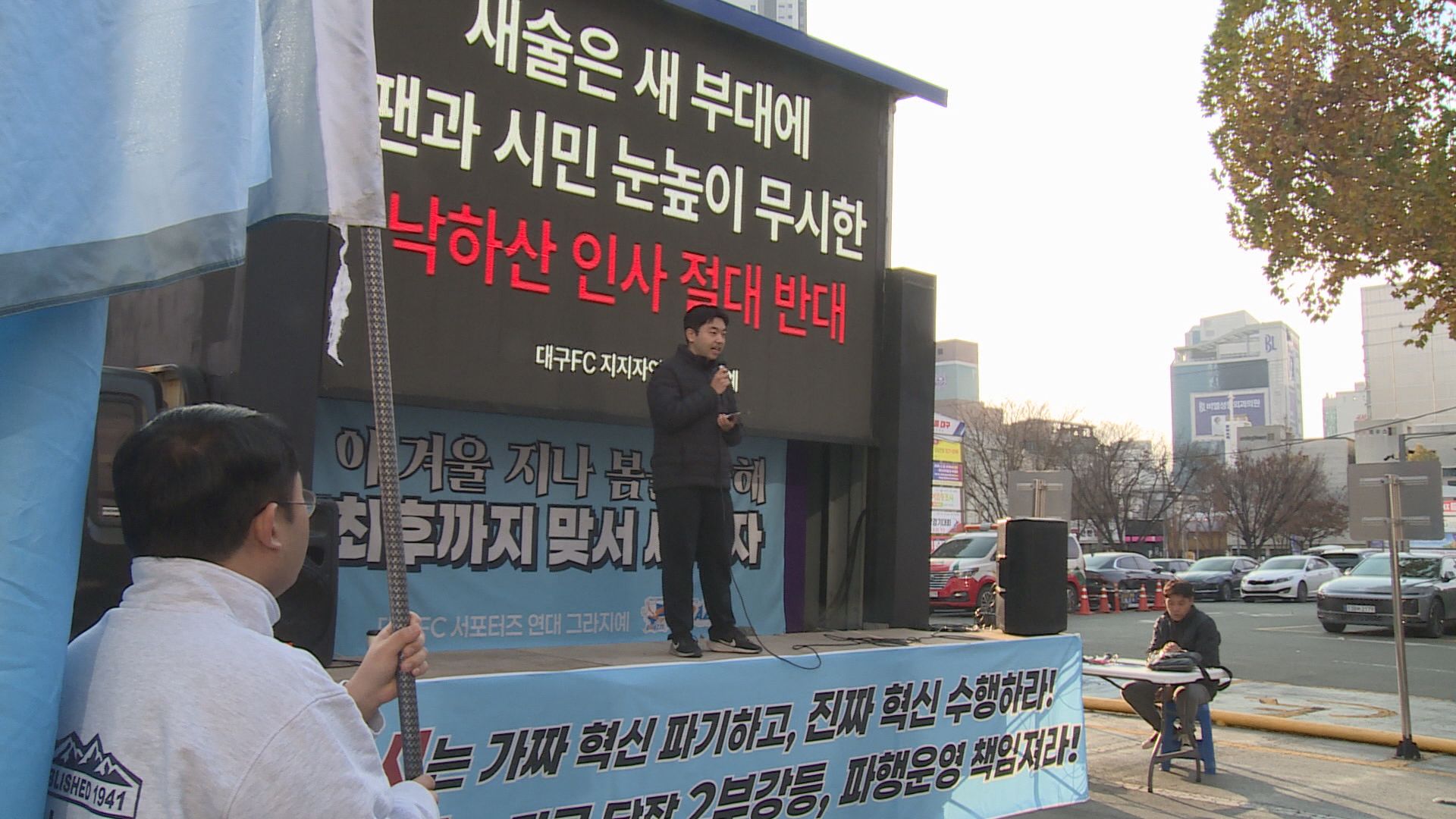 팬들이 화가 나서 대구시청에 구단 쇄신 촉구하면서 근접 화환 시위까지 벌였습니다.한 교수님, 어떤 것을 요구하고 있고 이뤄질 가능성에 대해서는 어떻게 보시나요?