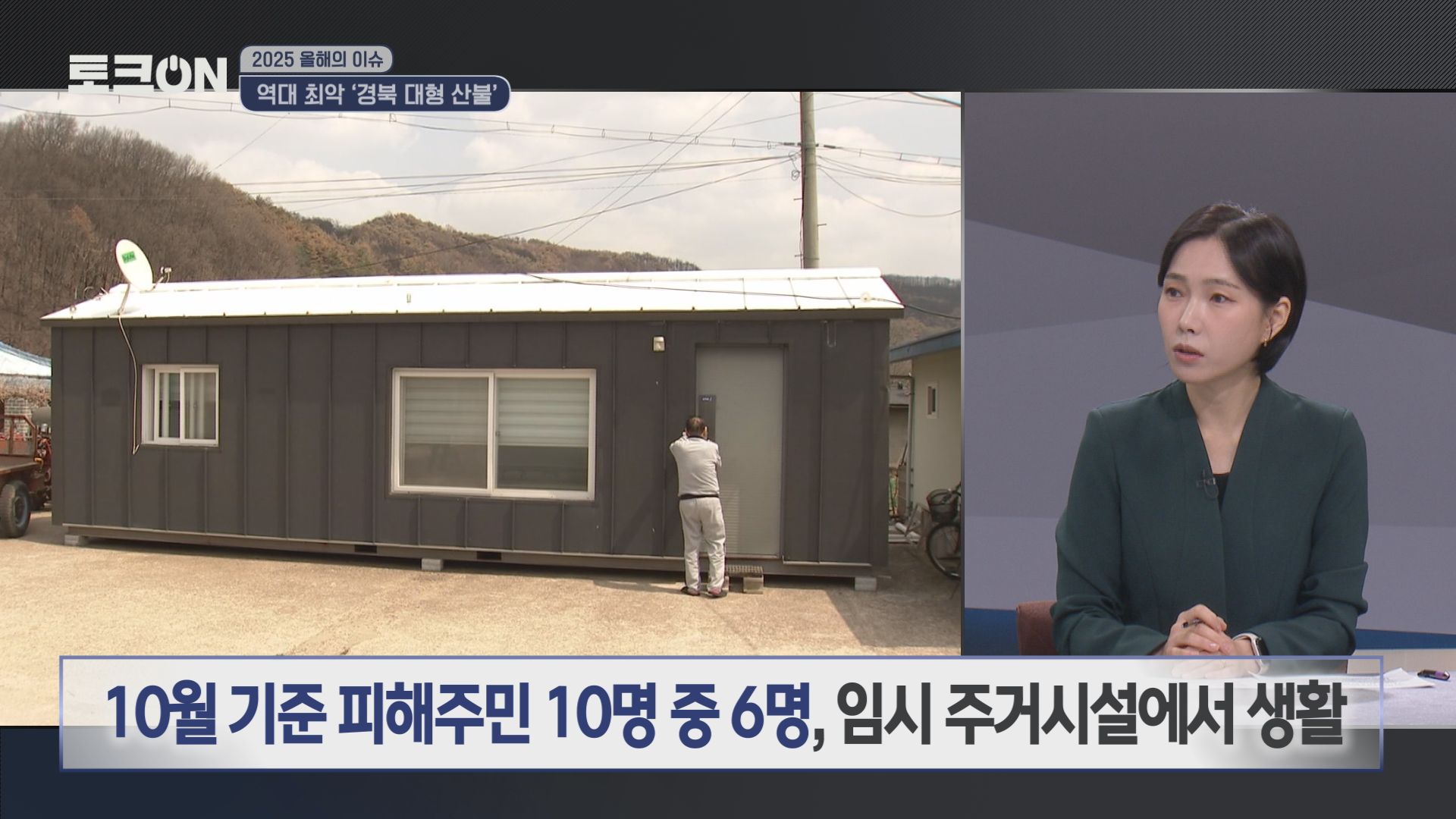 그리고 10월을 기준으로 피해 주민 10명 중에 6명이 아직도 본인들의 주거지로 돌아가지 못하고 임시 거주 시설에서 살고 계신 것으로 나타났고요. 피해 주민의 70%는 산불 피해 이전의 소득을 회복하지 못하는 것으로 나타났습니다.