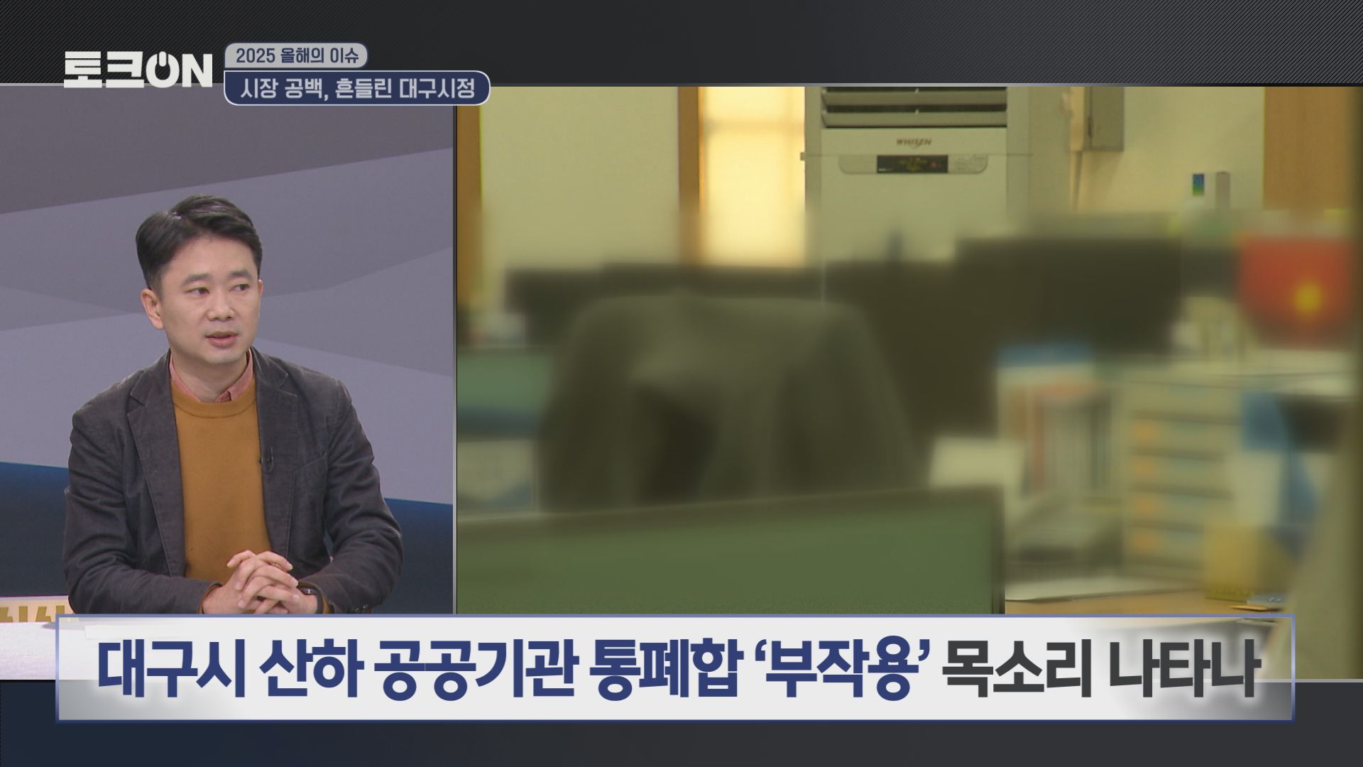 또 한 가지가 홍 시장 체제 들어서면서 대구시 산하 공공기관, 출자 출연 기관들을 강하게 통폐합했습니다. 네다섯 개의 기관을 하나로 묶어버린다든가 특정한 기능은 없애버린다든가 이렇게 했는데 한 2년 정도 지나고 나니까 내부적으로 갈등도 있고 제대로 굴러가지 않는 부분도 있었습니다.이걸 다시 좀 되돌려야 된다고 하는 목소리가 나오기 시작했는데 사실 이걸 놓고 보면 시장이 들어와서 강하게 밀어붙였던 부분들이 한 3년 정도 지나고 시장이 물러나고 나니 이것들이 다시 제자리로 찾아가는 모양새가 올 연말에는 좀 보인다고 정리해 볼 수 있겠습니다.