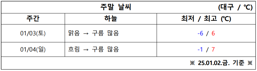 1월 1주 차 대구·경북 주말 ‘날씨 체크’