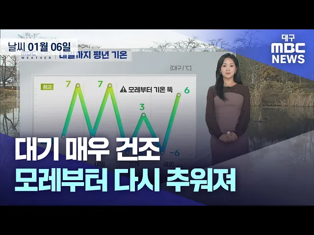1년 중 가장 춥다는 절기 '소한'인 1월 5일 월요일 대구와 경북 지역은 대체로 맑은 가운데 대기가 건조하겠습니다.