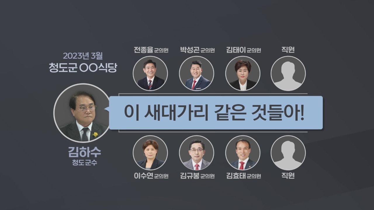 지난 2023년 경북 청도의 한 식당에서 국민의 힘 소속 군의원 6명과 김하수 군수가 만났습니다.