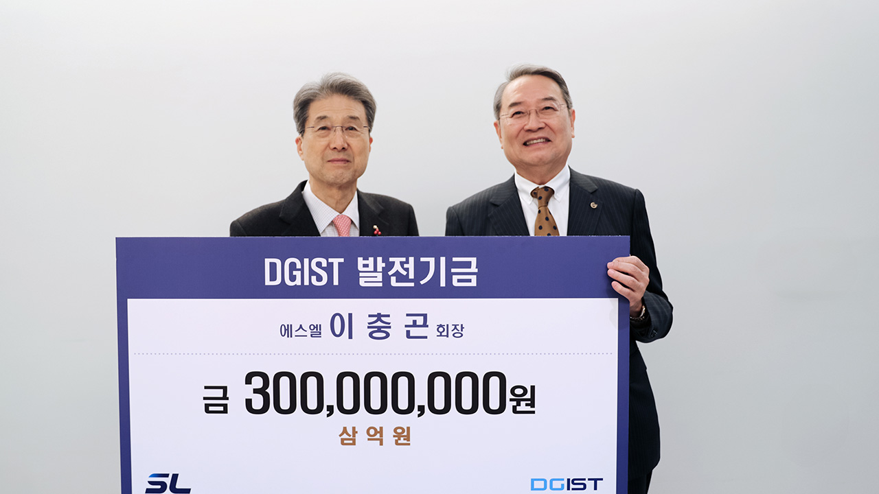 지역의 대표 자동차 부품 기업인 SL(에스엘) 이충곤 회장이 디지스트(DGIST)에 발전 기금 3억 원을 기부했습니다.