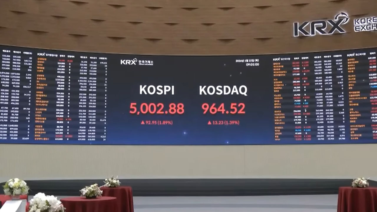 코스피가 사상 최초 5000 포인트를 돌파했습니다.