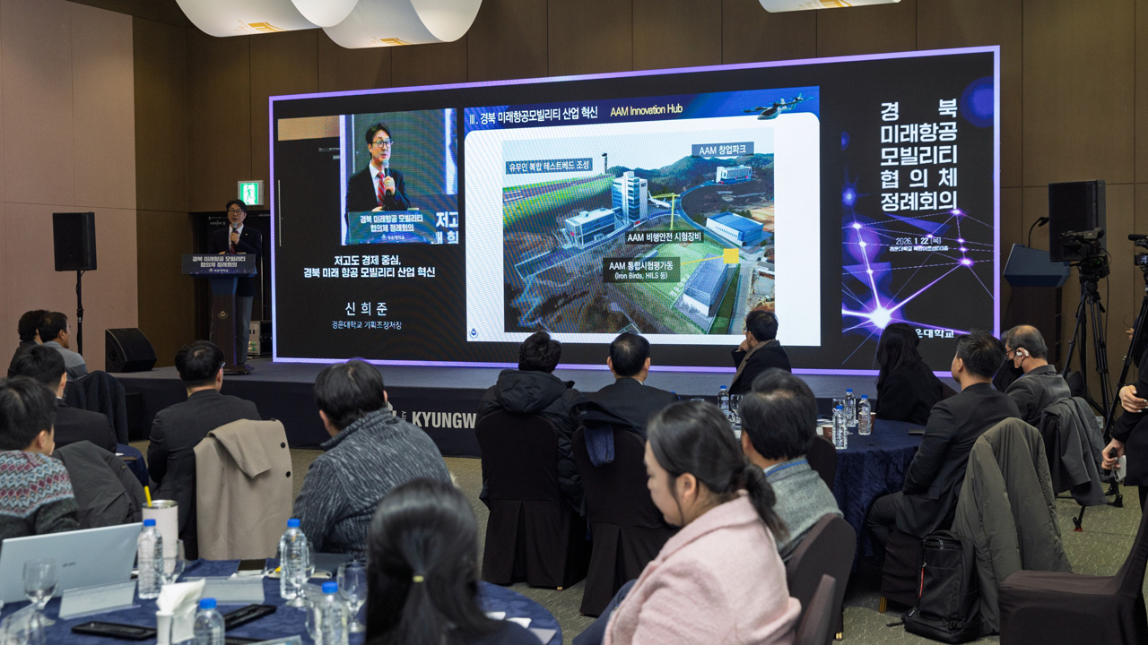경운대학교는 지역 미래 항공 모빌리티 산업 생태계 조성을 위해 산‧학‧연‧군 등 50개 기관과 전략적 협력 체계 구축을 위한 협약을 체결한 데 이어 첫 정례 회의를 열어 핵심 플랫폼 역할을 할 것이라고 밝혔습니다.