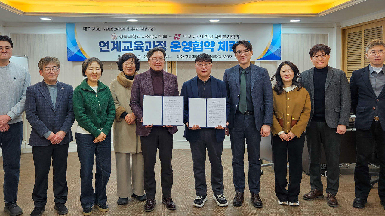 대구보건대학교는 경북대학교와 업무 협약을 맺고, 사회복지 분야 전문 인재 양성에 나섭니다.
