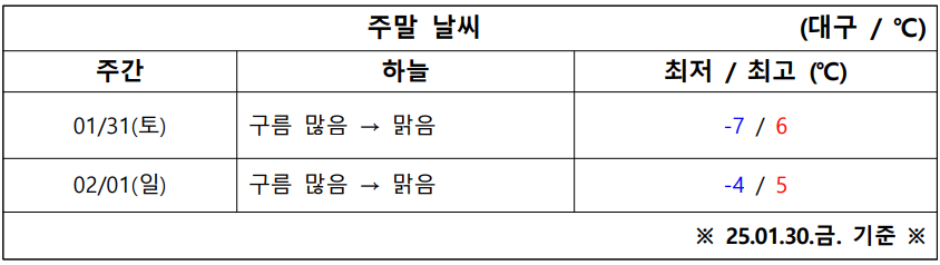 1월 5주 차 대구·경북 주말 ‘날씨 체크’
