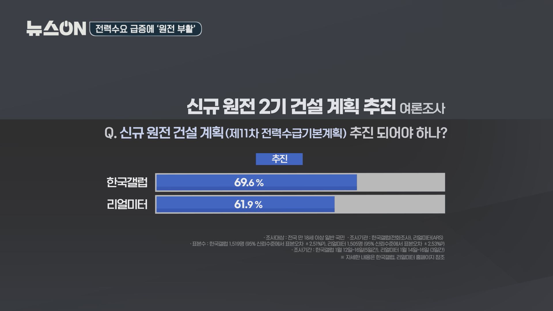 이전에는 원전 짓겠다고 하면 반대가 컸는데, 그간 흐름이 좀 바뀌었습니다. 최근 정부가 두 차례 여론조사를 진행했는데요. 신규 원전 건설을 계획대로 추진해야 한다는 답변이 각각 69.6%, 61.9%를 넘어선 것으로 나타났습니다. 원전 건설을 찬성하는 이유는 원전을 지을 때, 운영할 때 대규모로 일자리가 만들어지고요. 원전 유지 보수를 위해 관련 업체들도 지역에 들어와 정착할 거라 추가적인 경제적 효과를 누릴 수 있다고 판단한 겁니다.