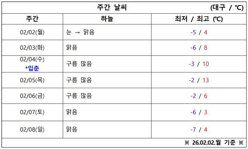 2월 1주 차 대구·경북 ‘날씨 체크’ 시작합니다.