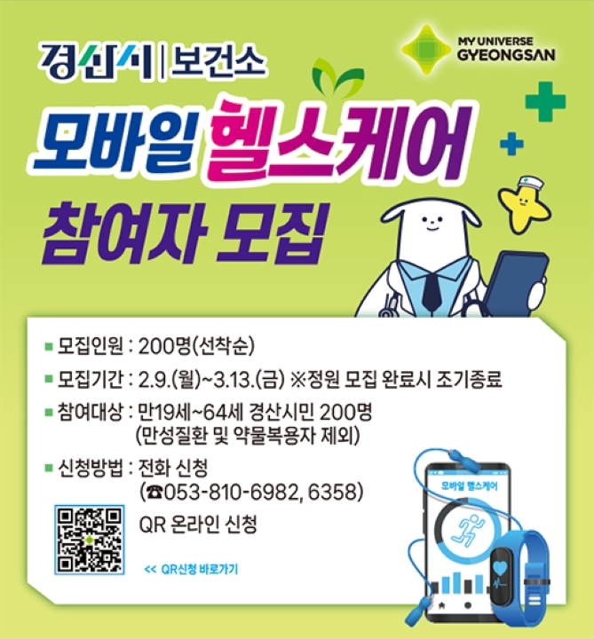 경북 경산시가 2026년 모바일 헬스케어 사업 참여자 200명을 모집합니다.