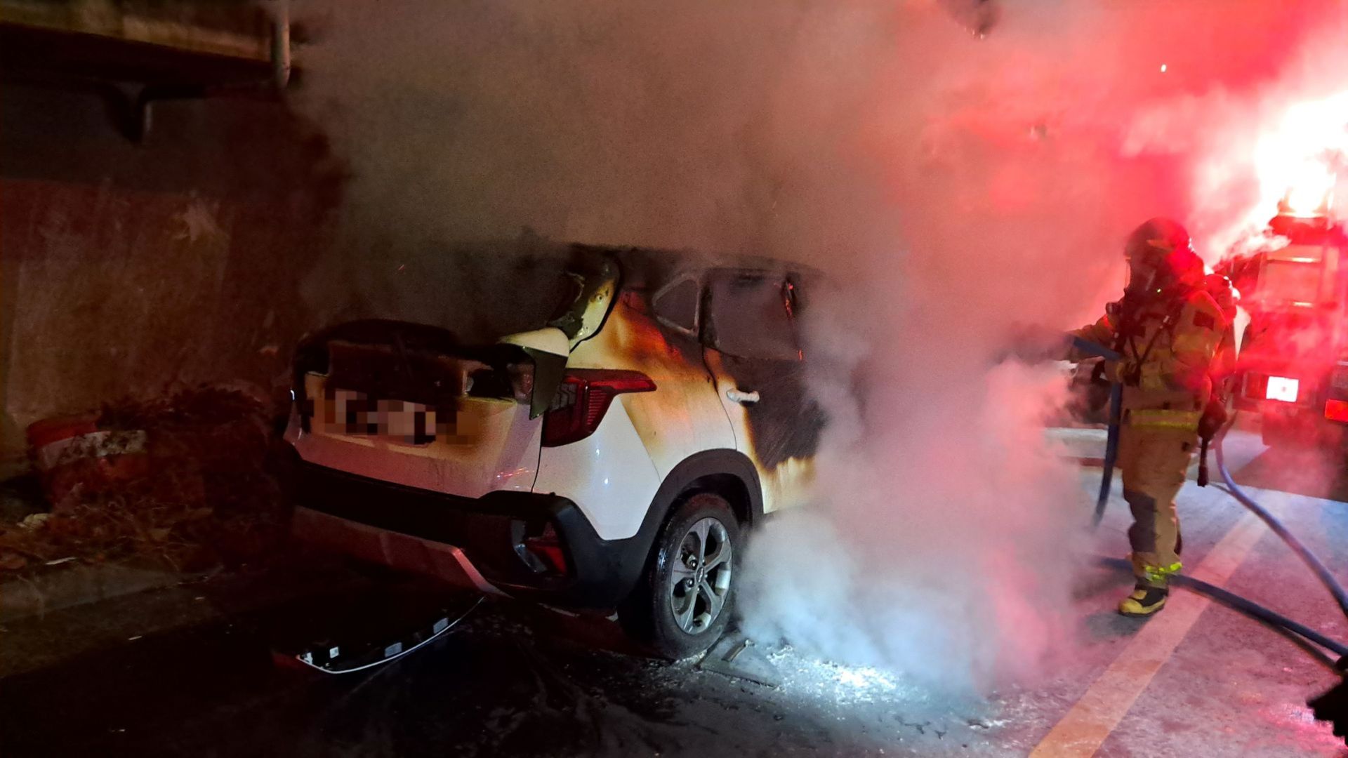 21일 오전 5시 40분쯤 경산시 사동에서 도로변에 주차해 있던 승용차에서 원인이 밝혀지지 않은 불이 났습니다.