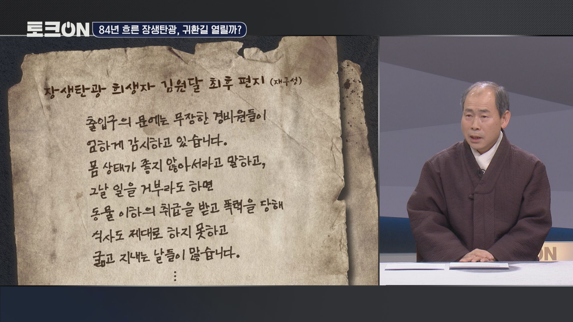 갱도 입구를 막겠다는 것은 일체의 구조 활동을 하지 않겠다는 것을 단적으로 보여주는 거 아니겠습니까?노동자들을 인간으로 보지 않고 그냥 전쟁 물자 취급을 하고 그러니까 갱도 입구를 막아버리니까 지금까지도 다시 구조할 수도 없는 그런 상황이 된거죠.