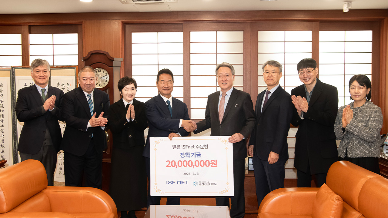 일본 글로벌 IT 기업 '아이에스에프 넷(ISFNET)' 와타나베 요키유시 회장은 지난 3일 영진전문대학교를 방문해 최재영 총장에게 장학금 2,000만 원을 전달했습니다