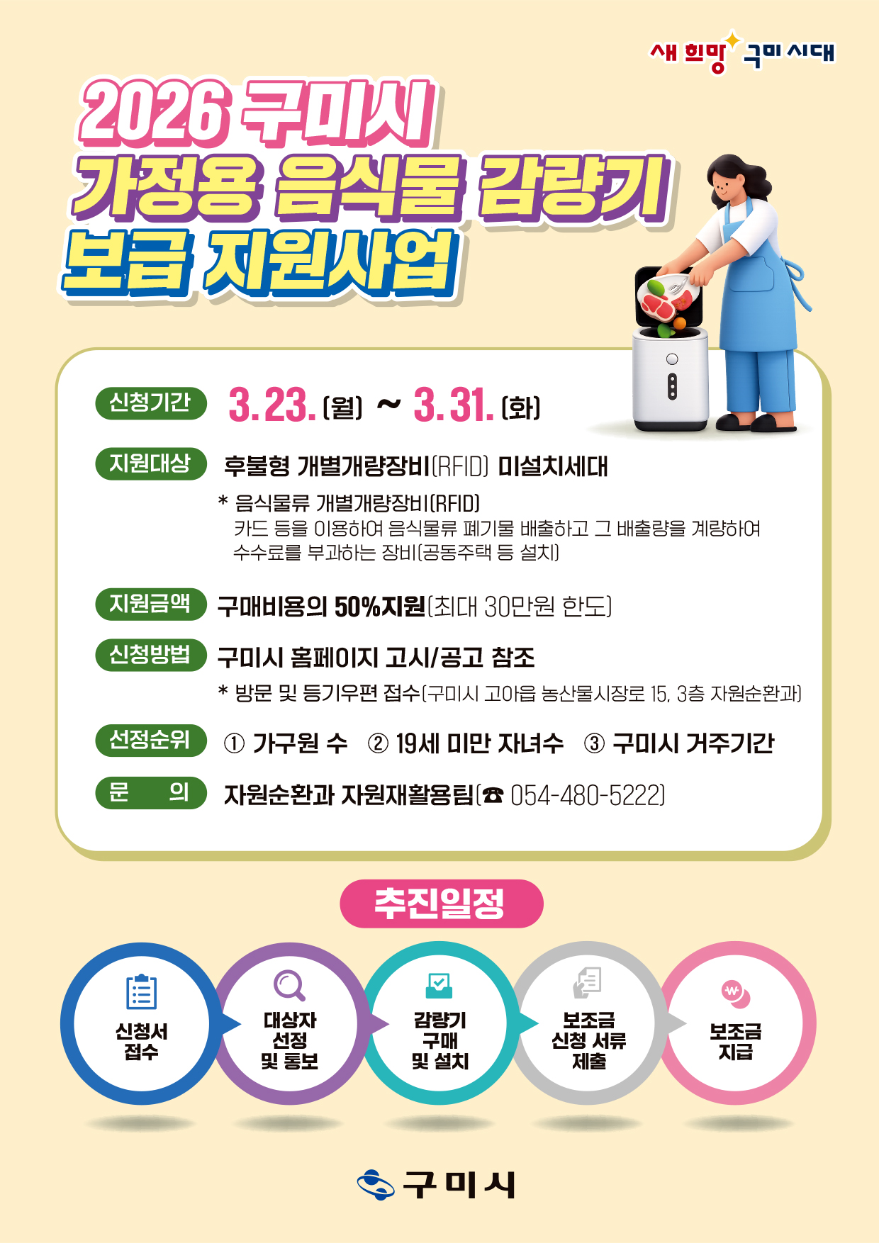 경북 구미시가 가정용 음식물 감량기 보급 지원사업을 합니다.