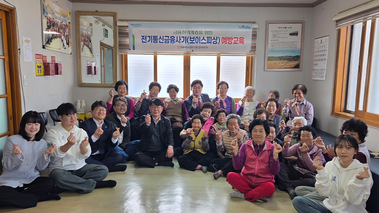 한편, NH농협은행 경북본부는 오늘 경북 청도군 사1리 경로회관을 찾아 어르신 20여 명을 대상으로 보이스피싱 예방 교육과 보이스피싱 보상 보험 무료 지원을 실시했습니다.