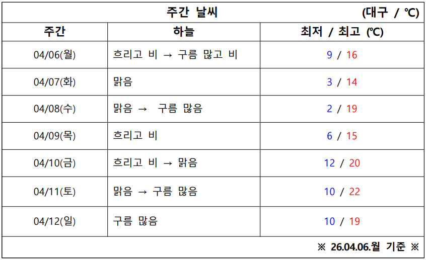 4월 2주 차 대구·경북 ‘날씨 체크’ 시작합니다.