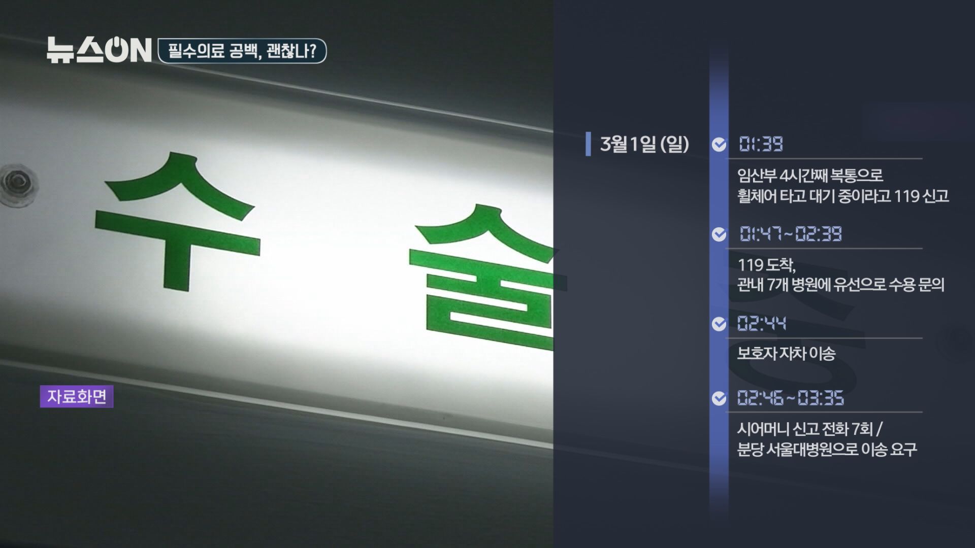 지난 3월 1일 새벽, 임신 28주 차인 20대 임신부가 복통을 호소하는 신고가 119에 접수됐습니다. 119가 도착을 해서 관내 7개 병원에 유선으로 수용을 문의했는데, 불가 답변을 받았고요. 이후에 임신부의 남편이 원래 진료를 받던 분당서울대병원까지 자차로 이동을 하는 중에 충북 쪽에서 119를 타고 4시간 만에 도착해서 수술을 받았지만, 쌍둥이 1명은 숨졌고 다른 한명도 저산소증 뇌손상 문제로 경과를 보고 있다고 합니다.
