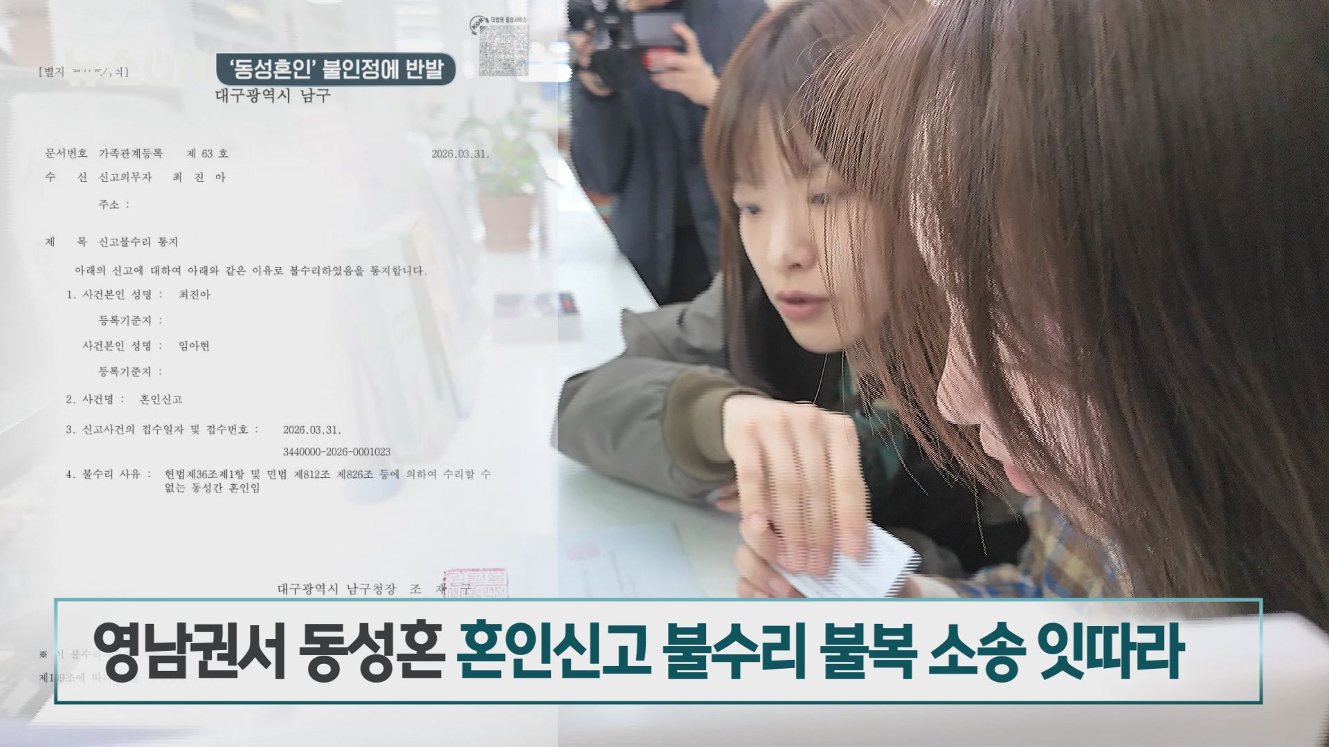 ‘동성혼’ 혼인신고 불수리 불복 소송 잇따라