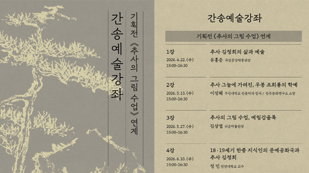 4월 22일 유홍준 국립중앙박물관장이 “추사 김정희의 삶과 예술”을 주제로 시작해 5월 13일 이성혜 한류문화연구소 소장이 우봉 조희룡을 중심으로 추사 화파의 예술세계를 다룹니다.