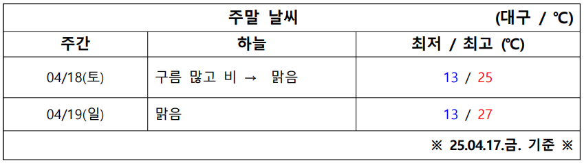 4월 3주 차 대구·경북 주말 ‘날씨 체크’
