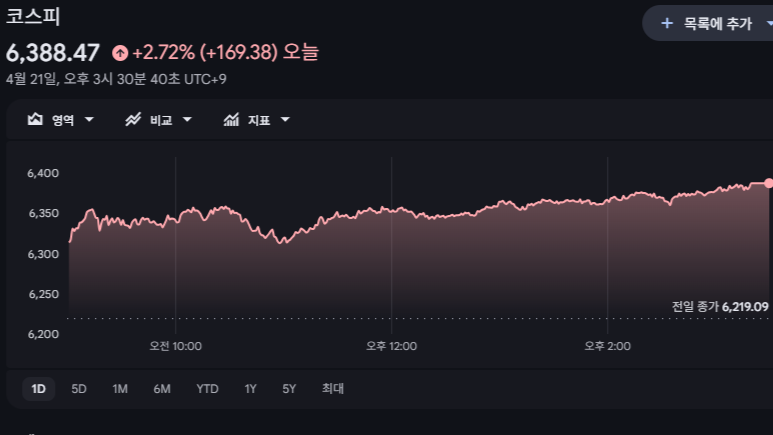 미국과 이란의 협상 난항에도 불구하고 코스피 지수가 전날보다 2.72%, 169포인트 넘게 오른 6,388.47로 거래를 마쳐, 두 달 만에 사상 최고치를 갈아치웠습니다.