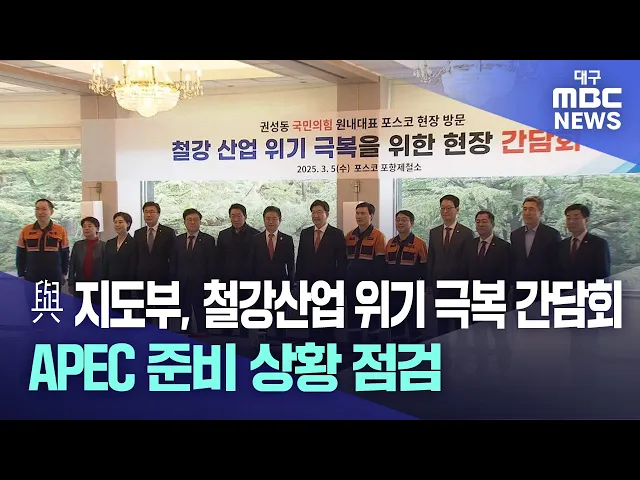 ◀앵커▶여당인 국민의힘 지도부가 3월 5일 포항과 경주를 잇달아 찾았습니다.철강산업 위기 극복을 위한 정부와 국회 차원의 지원 방안을 논의했고, 경주에서는 APEC 정상회의 준비 상황을 점검했습니다.한편 이번 친기업 행보로 더불어민주당 이재명 대표의 우클릭을 견제하려했다는 분석도 나왔습니다.김기영 기자가 보도...