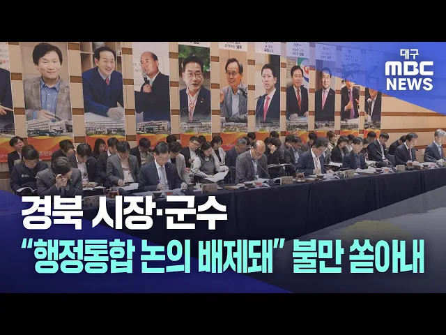 ◀앵커▶대구·경북 행정통합추진을 위한 최종 합의문이 10월 21일 발표됐는데요.경북의 22개 기초 자치 단체장들은 10월 24일 시장 군수협의회에서 한목소리로 불만을 쏟아냈습니다.시장 군수들이 논의에서 배제된 것은 지역민을 외면한 것과 마찬가지라며, 신중론은 물론 반대론까지 피력했습니다.김기영 기잡니다.◀기자▶2달...