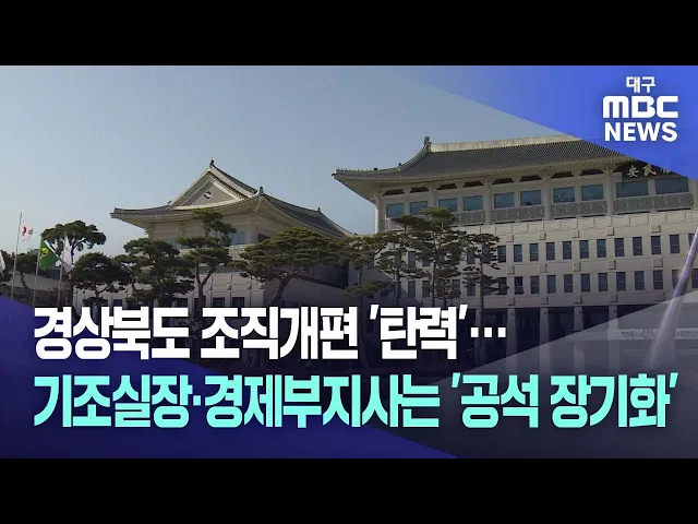◀앵커▶경상북도의 조직 개편안이 도의회 통과를 앞둔 가운데 '저출생 극복본부' 신설이 눈에 띕니다.이철우 도지사의 저출생 극복 의지가 담긴 개편안이라는 평가가 나오는데요, 하지만 도청 최고위직인 경제부지사와 기획조정실장 공석이 몇 달째 이어지면서 도청 안팎에서 이런저런 우려도 나옵니다.엄지원 기자입니다.◀...