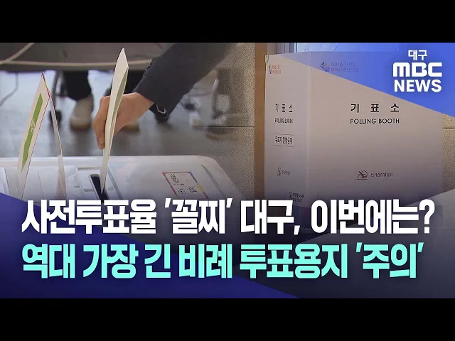 제22대 국회의원 선거 사전투표가 4월 5일과 6일 이틀 동안 오전 6시부터 오후 6시까지 진행됩니다.사전투표는 별도 신고 없이 본인 확인을 할 수 있는 신분증을 갖고 가면 대구 150곳, 경북 323곳 등 전국 3,560여 곳의 사전투표소에서 할 수 있습니다.자신이 거주하는 구·시·군 안에 있는 투표하는 유권자는 투표용지만 ...