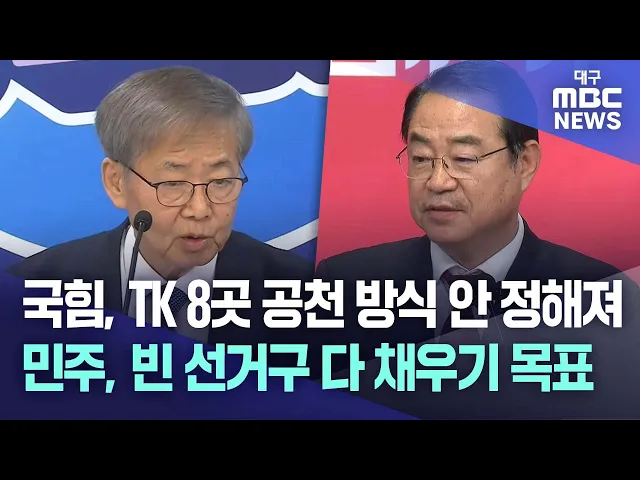 ◀앵커▶오는 4월 국회의원 선거와 관련해 대구·경북에서도 여·야 후보자 윤곽이 서서히 드러나고 있습니다. 국민의힘은 대구 동구 을과 수성 을에서 예비후보 경선을 치르기로 했고, 더불어민주당은 경북 2개 선거구에서 경선을 치러 공천자를 확정했습니다. 보도에 권윤수 기자입니다.◀기자▶국민의힘 공천관리위원회는 대구...
