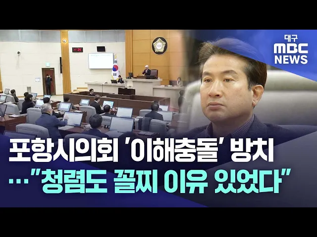 ◀앵커▶포항시의회가 공직자 이해충돌방지법을 위반한 정황이 드러난 시의원에 대해, 문제가 된 상임위원장직을 그대로 유지하는 결정을 내렸습니다. 최근 발표된 지방의회 청렴도 조사에서 포항시의회가 꼴찌를 했는데, 그럴 만하다는 비판이 나오고 있습니다. 장성훈 기자입니다.◀기자▶2023년 11월, 포항시의회 건설도시위...