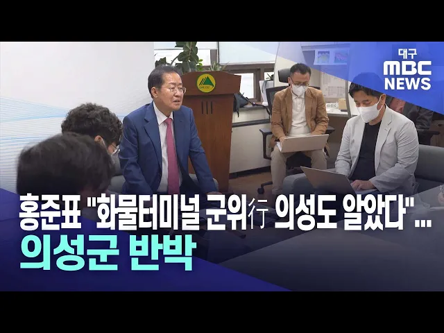 ◀앵커▶대구경북신공항 화물터미널 위치를 두고 의성 지역의 반발이 거센 가운데, 홍준표 대구시장이 '화물터미널이 군위군에 가기로 한 건 의성군도 이미 합의했다'는 취지의 언론 브리핑을 잇따라 열었습니다.의성군은 '대구시 입장에서 짜깁기한 주장'이라고 반박하며, 내부적으로 입장을 정리해 조만간 발표하겠다고 밝...
