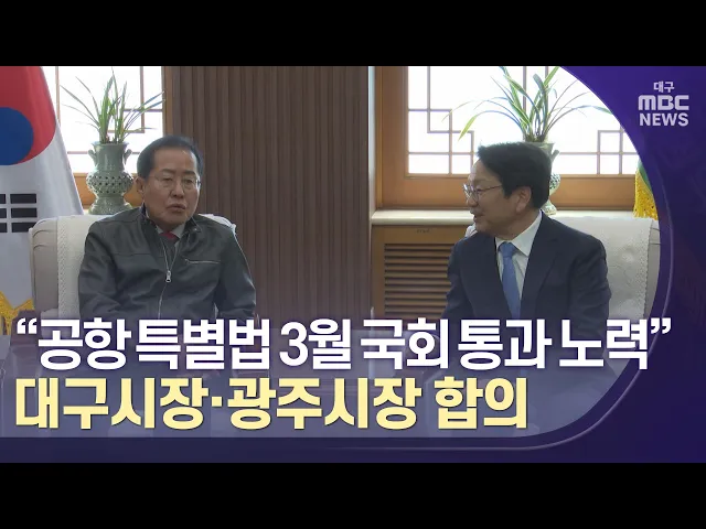 ◀앵커▶강기정 광주시장이 2.28민주운동 기념식이 열린 대구를 찾았습니다. 강 시장은 홍준표 대구시장과 따로 만나 양 지역 현안을 논의하며 달빛동맹을 확인했습니다.특히 대구경북 통합신공항 특별법과 광주 군 공항 이전 특별법을 3월 국회에는 반드시 통과시키는데 힘을 모으기로 했습니다. 보도에 권윤수 기자입니다. ...