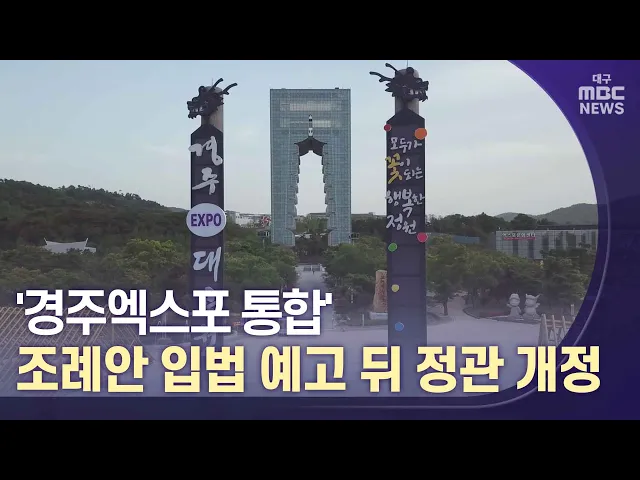 ◀앵커▶경주엑스포 통합 과정에서 경상북도가 통합 조례안의 입법 예고 기간이 끝난 뒤에 엑스포 정관을 개정한 것으로 확인됐습니다.경주시의회는 당초에는 정관에 없었던 도지사의 해산 권한을 신설했다며 명백한 꼼수라고 주장했습니다.경상북도는 조례안 발의로 통합이 가능하고 근거 마련을 위해 정관을 개정했다고 해...