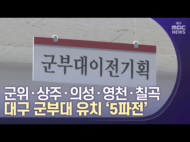 ◀앵커▶대구시가 군부대를 원하는 자치단체로부터 유치 신청서를 받은 결과, 경북의 5개 지역이 신청했습니다. 경제적 효과를 기대하며 이미 치열한 각축전에 돌입했습니다.대구시가 2022년 말까지 국방부에 이전 협의 요청서를 보내면 이전지 선정 작업이 본격적으로 시작되는데요,국군부대 이전은 2030년 이전에 마무리되...