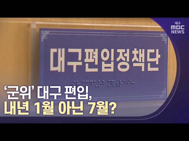 ◀앵커▶군위군을 대구시에 편입하는 법률안의 국회 통과에 청신호가 켜져 있습니다.국민의힘 주호영 원내대표가 경북 국회의원들의 합의가 없어도 11월에는 결론내리겠다고 못 박았기 때문인데요.그런데, 실제로 군위군이 대구시로 편입되는 시기는 2023년 1월이 아니라 7월이 될 수 있다는 전망이 나오고 있습니다.취재기자...