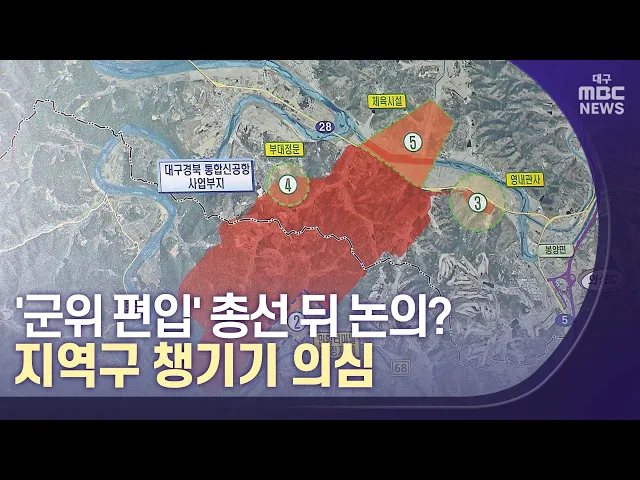 ◀앵커▶대구·경북 통합 신공항 이전지를 확보하기 위해 군위군을 대구에 편입하기로 했죠? 하지만 이 편입안 논의가 한 걸음도 더 나가지 못하고 있습니다.정치권은 대선과 지방선거 뒤로 미루더니 이제는 공항 공사부터 해야 한다고 말합니다. 이렇게 되면 다음 총선 뒤에나 편입안 처리가 가능한데요.국회의원들이 자신의 ...