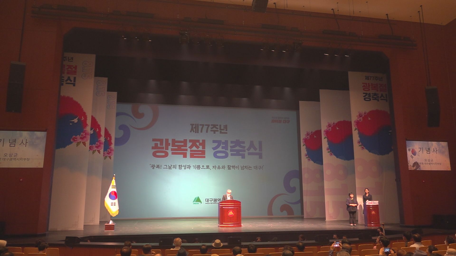 제77주년 광복절 경축식이 오늘(15일) 대구문화예술회관 팔공홀에서 열렸습니다.광복회원과 보훈단체, 기관·단체장 등 200여 명이 참석해 광복의 참된 의미와 순국선열의 숭고한 희생정신을 되새겼습니다.경축식은 화선무 공연과 기념사, 독립유공자 포상, 경축사, 만세삼창 등의 순으로 진행됐습니다.경상북도도 도청 동락...