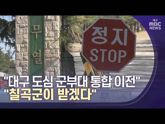 ◀앵커▶대구 도심의 군부대 이전이 추진되고 있습니다. 대구시는 국군 부대와 미군 부대 7곳을 통합 이전하는 방안을 검토하고 있습니다.칠곡군은 지역경제 파급 효과를 기대하며 군부대 유치 의사를 내비쳤는데요,7개 부대 모두도 받을 수 있다며 가장 적극적으로 나서고 있습니다.보도에 서성원 기자입니다. ◀기자▶대구시...