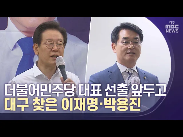 ◀앵커▶더불어민주당 당권 주자인 이재명 후보와 박용진 후보가 오늘 각각 대구를 찾았습니다.이 후보는 현 정부를 감시하기 위해 민주당에 더 힘을 실어 달라고 요청했고, 박 후보는 이 후보를 견제하는 발언을 많이 쏟아냈습니다.권윤수 기자가 보도합니다.◀기자▶이재명 후보는 더불어민주당 대구 12개 지역 위원회가 주관...