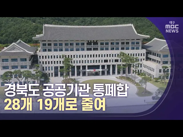 ◀앵커▶이번에는 경상북도 산하기관의 통폐합 상황도 살펴보겠습니다. 공공기관 구조조정의 윤곽이 드러났는데요,경상북도는 현재 28개인 산하 기관을 30% 넘게 줄여 19개로 개편하겠다고 밝혔습니다.비대해진 조직에 대한 군살빼기라는 점에서 대구시와 닮아 있습니다.이도은 기자의 보도입니다.◀기자▶경상북도는 산하 공공...