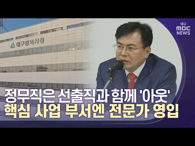 ◀앵커▶대구시장직 인수위원회가 6월 27일 홍준표 당선인의 조직 개편안을 발표했습니다. 비슷하거나 중복되는 조직을 통합했고 원스톱 기업 투자센터를 새로 만들어 투자 기업을 밀착 지원하기로 했습니다.홍 당선인이 SNS에 여러 차례 글을 올려 강조했던 부분도 실행에 옮기는데요,이른바 정무직 '알박기'를 근원적으로 ...