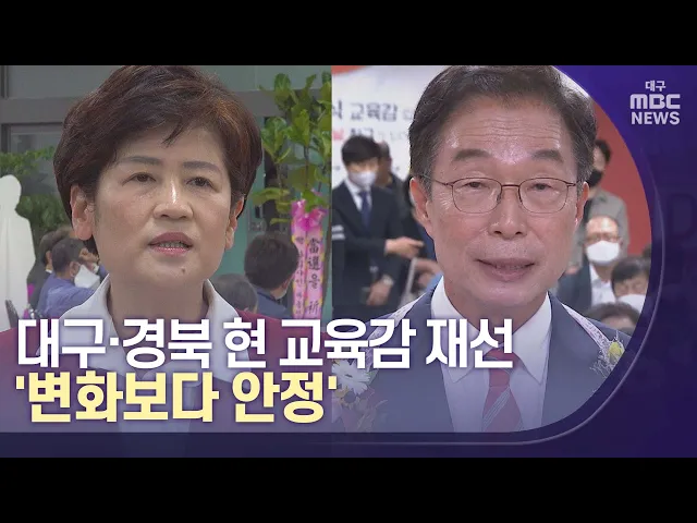 ◀앵커▶교육감 선거에서 대구와 경북은 보수색 강한 후보들의 당선으로 끝났습니다.두 명 모두 재선에 도전한 현 교육감입니다. 교육에 있어 지역 유권자들의 선택은 변화보다 안정이었습니다.조재한 기자가 보도합니다.◀기자▶ 양자 대결 대구교육감 선거에서는 강은희 후보가 엄창옥 후보를 여유 있게 앞섰습니다.막판까지 ...