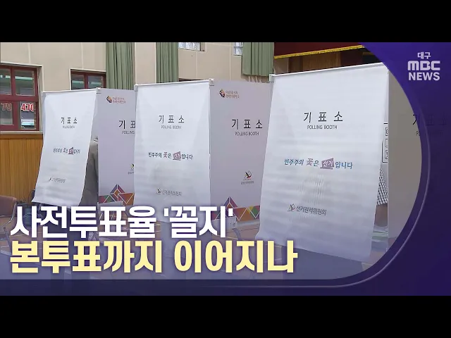 ◀앵커▶전통적인 보수 초강세 지역이자 사전투표율이 가장 낮았던 곳이 대구입니다.손은민 기자, 투표가 시작된 지 ( )시간 정도 지났는데, 시민들이 많이 참여하고 있습니까?◀기자▶네, 저는 지금 대구 수성구 욱수초등학교에 마련된 투표소에 나와 있습니다.지난 대선 때는 투표 시작 전부터 한 표를 행사하려는 유권자들로...