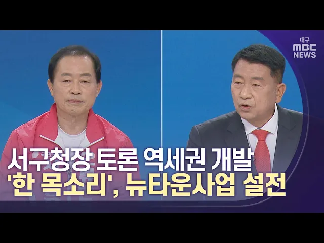 ◀앵커▶대구 서구청장 선거에는 3선을 노리는 국민의힘 후보와 무소속 후보, 2명이 맞대결하고 있습니다.대구문화방송에서 열린 토론회에서 후보들은 서대구 역세권 개발과 낙후한 지역 환경 개선 방안을 두고 열띤 토론을 벌였습니다.김은혜 기자가 토론회 내용, 정리했습니다. ◀기자▶대구 서구청장 선거에 나선 국민의힘 ...
