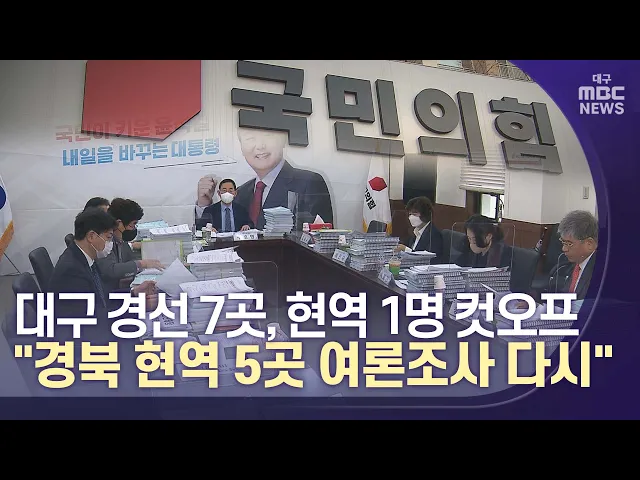 ◀앵커▶국민의힘이 대구 8개 구군 가운데 7곳에서 단체장 후보 경선을 하기로 했습니다. 공천 희비가 엇갈렸습니다.현역 단체장 가운데 수성구는 유일하게 단수 추천을 받았지만, 동구만 유일하게 컷오프됐습니다.경북은 논란과 잡음이 끊이지 않고 있습니다.여론조사가 잘못됐다며 재조사하라는 중앙당의 조치까지 나오는 ...