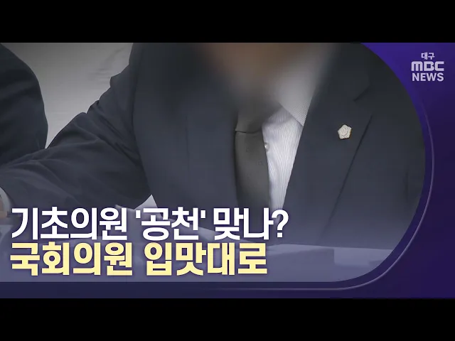 ◀앵커▶이처럼 기초단체장 공천도 논란이 일파만파 확산하고 있습니다만, 기초 의원은 상황이 더 심각합니다.시·도 광역 의원까지는 공천관리위원회가 그나마 공천 심사를 하는데, 기초 의원은 이런 공적 기구의 심사도 거치지 않습니다.기초의원에 대한 공천 결정은 국회의원인, 당협위원장이 독단적으로 하고 있습니다.조...