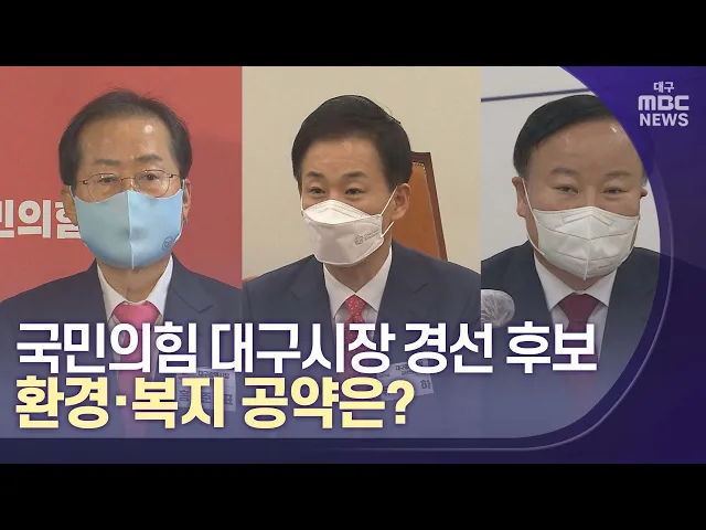 ◀앵커▶대구시장 선거에 나선 국민의힘 경선 후보들의 대구 각 분야 공약을 살펴보는 시간입니다.4월 22일은 마지막으로 환경과 복지 부문에서 후보자들이 어떤 정책을 펼치기로 공약했는지 살펴보겠습니다.보도에 권윤수 기자입니다.◀기자▶환경 분야 공약은 세 후보 모두 낙동강 취수원 다변화 문제를 언급했습니다.김재원 ...