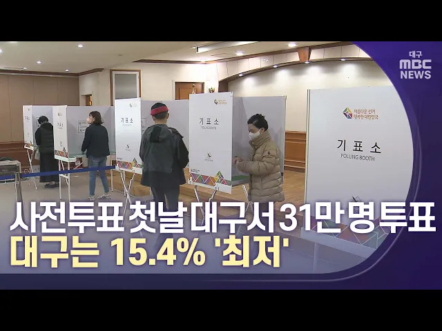 ◀앵커▶제20대 대선 사전투표 첫날, 대구·경북에서는 79만여 명이 소중한 한 표를 행사했습니다. 투표율은 대구 15.4%, 경북 21%입니다.전국 평균보다 대구는 낮고, 경북은 높습니다.경북은 전국에서 네 번째로 투표율이 높았고, 대구는 경기도에 이어서 전국에서 투표율이 가장 낮았습니다.지난 19대 대선 때보다는 훨씬 높...