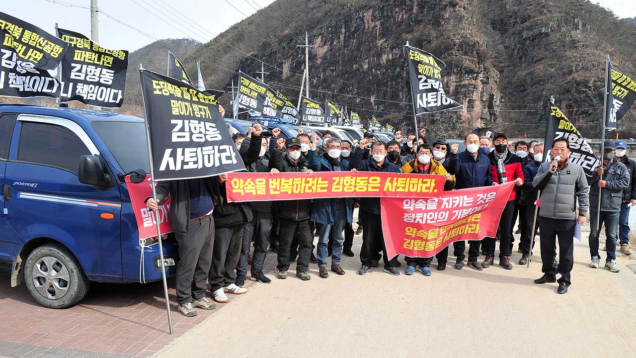 "김형동 의원 사퇴" 군위·대구 단체 차량시위